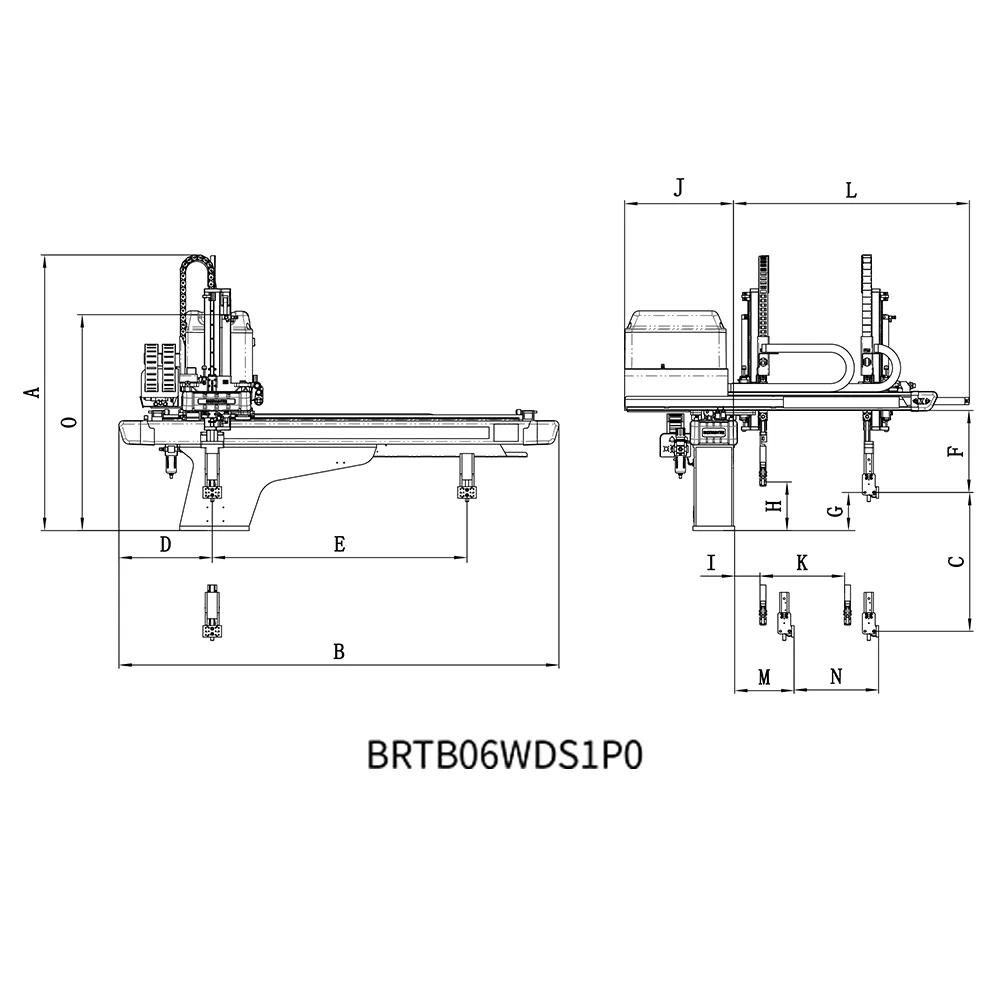 BRTB06WDS1P0/F0横移机械手适用于30T-120T各型号卧式注塑机,用于取出制品及浇口。纵臂为伸缩式,配有制品臂和流道臂,适用于二板或三板模制品的取出。横移轴采用交流伺服电机驱动,定位精准、速度快、寿命长、故障率低。安装该机械手后,生产效率可提高10-30%,降低制品不良率,保障操作人员安全,减少人力投入,精准控制产量,减少浪费。单轴驱控集成控制系统:信号线少,通讯距离远,扩展性好,抗干扰能力强,重复定位精度高,可同时控制多轴,设备维护简单,故障率低。