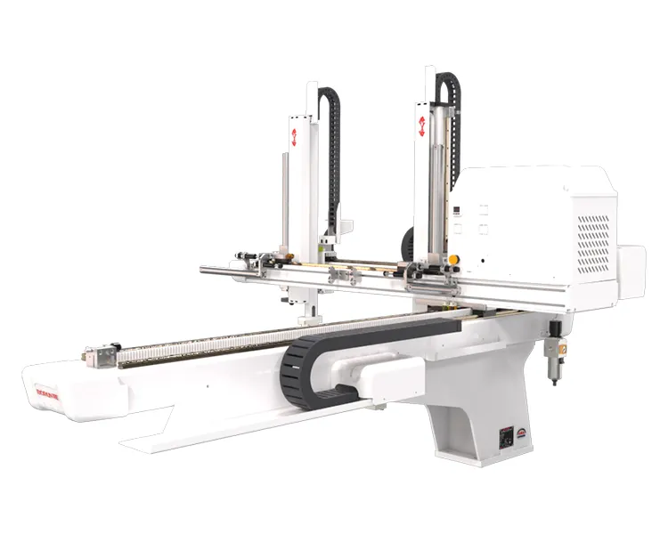 BRTB08WDS1P0/F0为伸缩式,配备产品臂和流道臂,用于两板或三板模具产品的取出。横移轴由交流伺服电机驱动。