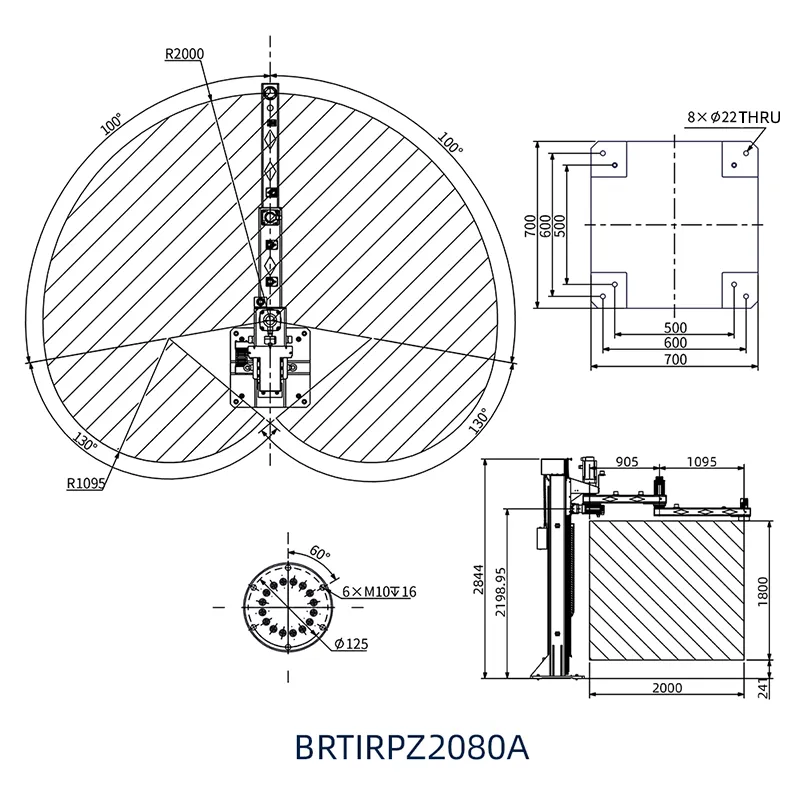 BRTIRPZ2080A是博朗特机器人有限公司针对某些单调、频繁、重复性的长期作业,或在危险、恶劣环境下作业而研发的一款四轴立柱码垛机器人。
