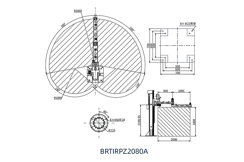 BRTIRPZ2080A是博朗特机器人有限公司针对某些单调、频繁、重复性的长期作业,或危险恶劣环境下作业而研发的一款四轴立柱码垛机器人。其臂展2000mm,最大负载80kg。多自由度的灵活性,可轻松应对上下料、搬运、拆箱、码垛等场景。防护等级达到IP40,重复定位精度±0.15mm。