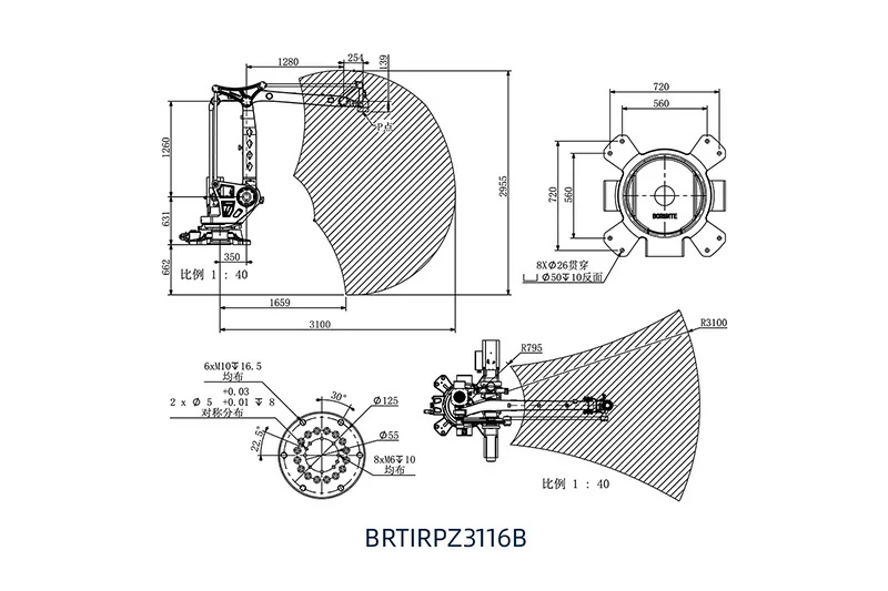 BRTIRPZ3116B是博朗特自主研发的一款四轴机器人,响应速度快,精度高。其最大负载160KG,最大臂展可达3100mm。结构紧凑,动作灵活精准,可实现大范围运动。用途:适用于袋装、箱装、瓶装等包装形态物料的码垛。防护等级达到IP40,重复定位精度±0.5mm。