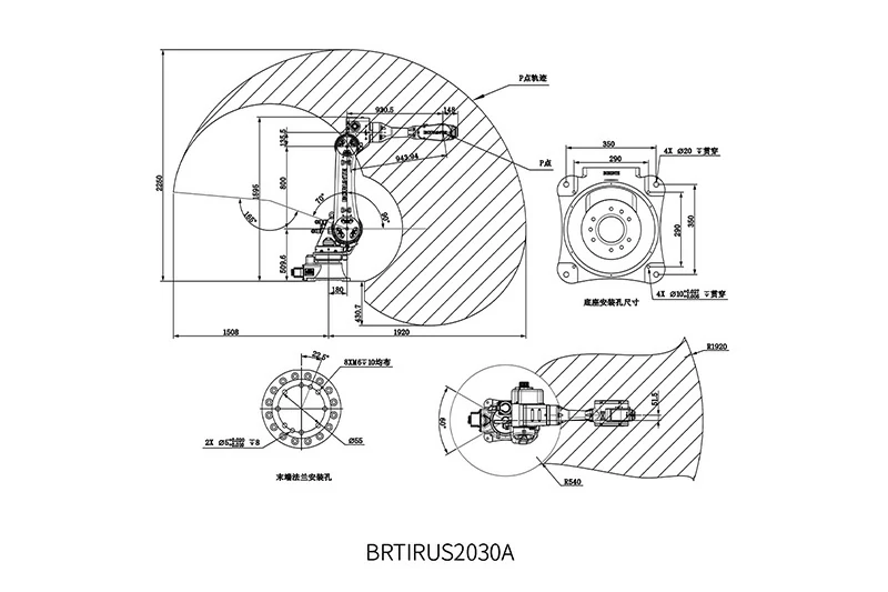 BRTIRUS2030A是博朗特针对复杂应用领域研发的一款多自由度六轴机器人。最大负载30kg,最大臂长2058mm。六自由度的灵活性可轻松应对注塑件取放、机器上下料、装配搬运等场景。防护等级腕部达到IP54,机身达到IP40,重复定位精度±0.08mm。