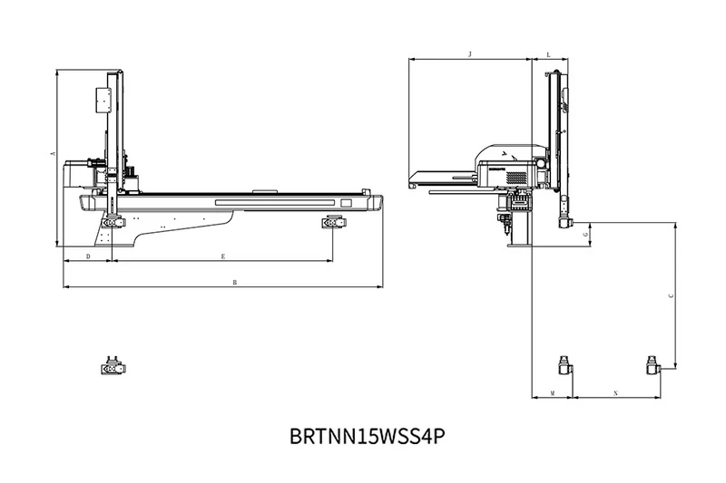 BRTNN15WSS4P/F系列适用于470T-800T各型号卧式注塑机,用于产品取出。垂直手臂为伸缩式,带产品手臂。四轴交流伺服驱动,手腕带C伺服轴,C轴旋转角度:90°。比同类机型节省时间,定位精准,成型周期短。安装机械手后,生产效率可提高10-30%,降低产品不良率,保障操作人员安全,减少人力投入,精准控制产量,减少浪费。四轴驱动器与控制器集成系统:信号线少,通讯距离远,扩展性好,抗干扰能力强,重复定位精度高,可同时控制多轴,设备维护简单,故障率低。