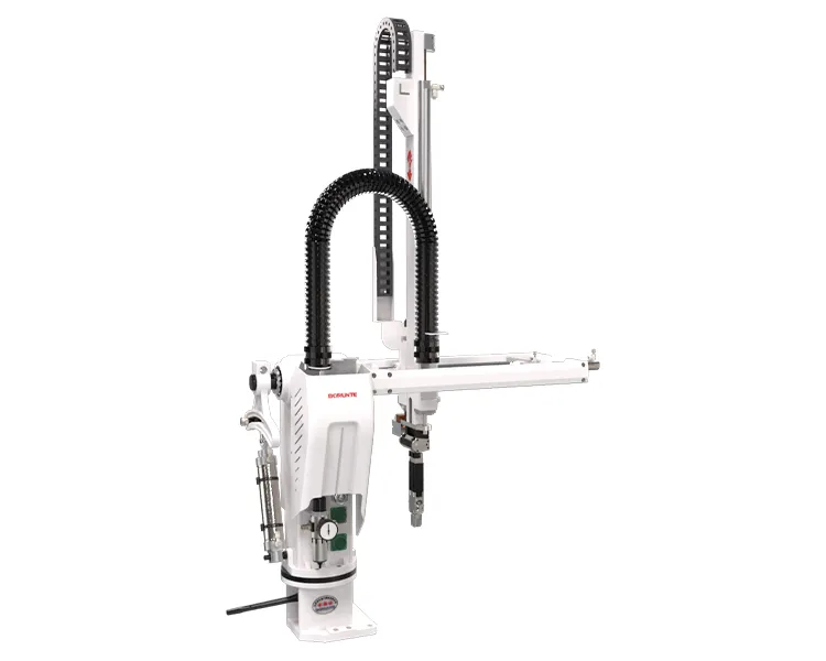 BRTP06ISS0PC系列适用于30T-150T各型卧式注塑机,用于产品取出。上下臂为单/双节式,上下动作、拉出、旋入均采用气压驱动,速度快、效率高。安装此机械手后,产能可提升10-30%,降低产品不良率,保障操作人员安全,减少人力投入,精准控制产量,减少浪费。
