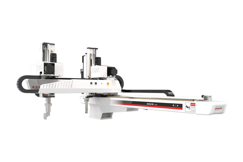 BRTR08TDS5PC/FC系列适用于50T-230T卧式注塑机,用于取出成品及水口,手臂形式三进制,双臂式,五轴交流伺服驱动,可用于快速取件或模内贴合、模内镶件等特殊产品应用。定位精准,速度快,寿命长,故障率低。安装机械手后可提高产能(10-30%),降低产品不良率,保障操作人员安全,减少人力。精准控制生产,减少浪费,保证交期。五轴驱动器与控制器集成系统:信号线少,通讯距离远,扩展性能好,抗干扰能力强,重复定位精度高,可同时控制多轴,设备维护简单,故障率低。