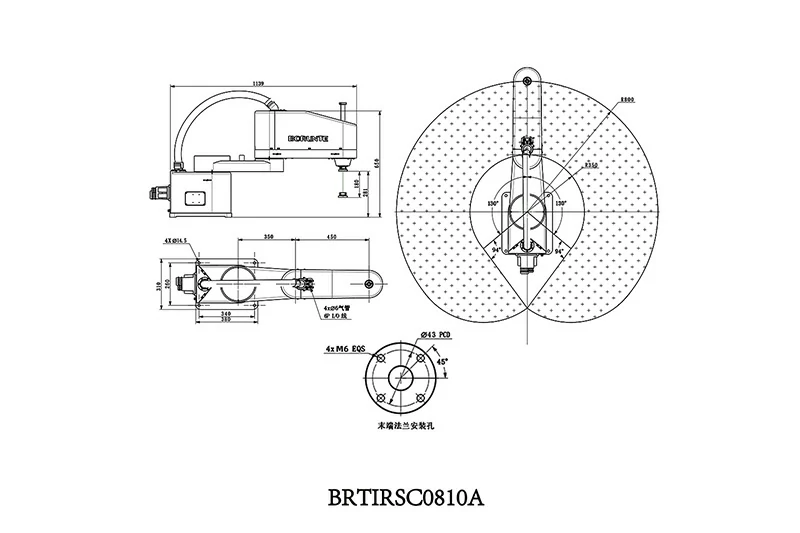 BRTIRSC0810A型机器人是博朗特针对一些单调、频繁、重复性长时间作业而研发的一款四轴机器人。最大臂长800mm,最大负载10kg,灵活多自由度。适用于印刷包装、金属加工、纺织家居、电子设备等领域。防护等级达到IP40,重复定位精度±0.03mm。