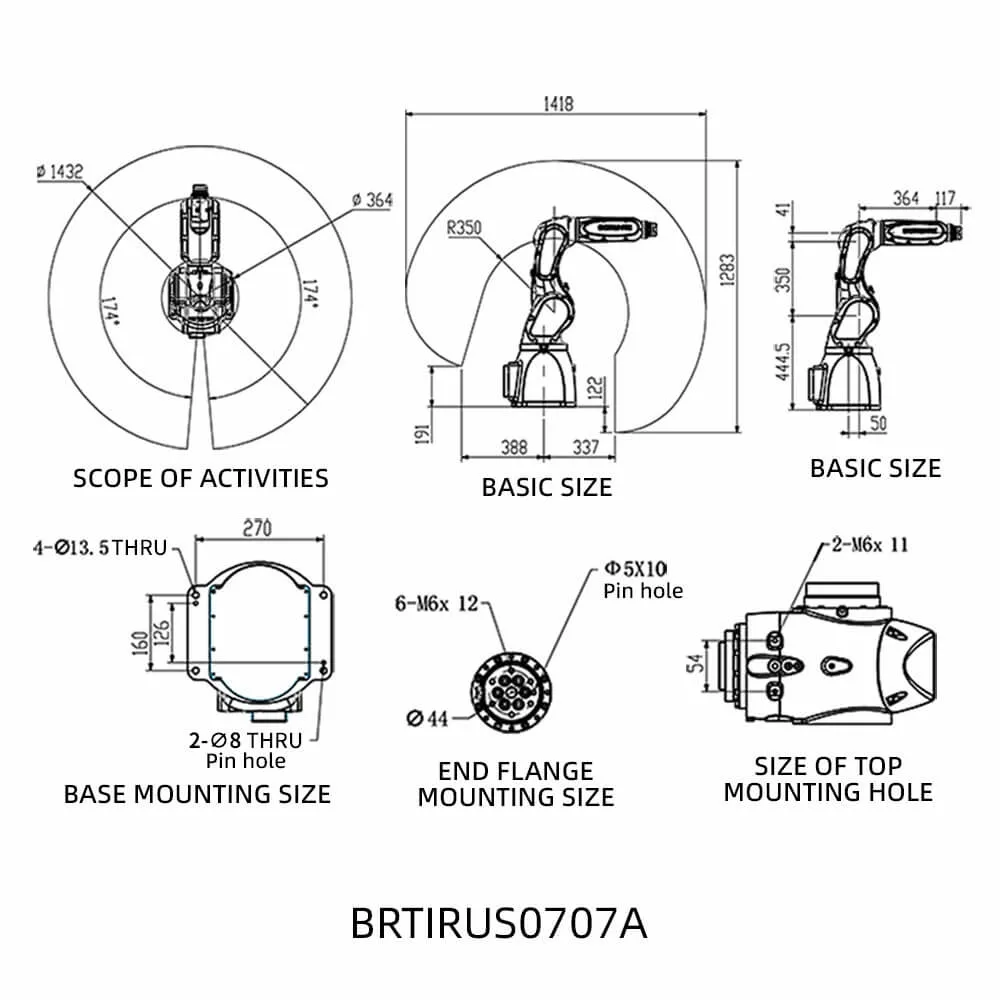 BRTIRUS0707A型机器人是博朗特针对一些单调、频繁、重复性的长期作业或在危险、恶劣环境下作业而开发的。
