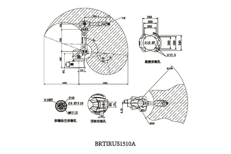 BRTIRUS1510A是博朗特针对复杂应用领域研发的一款六轴多自由度机器人,最大负载10kg,最大臂长1500mm。轻量化的手臂设计,紧凑简洁的机械结构,在高速运动状态下,可在狭小的工作空间内进行灵活作业,满足柔性化生产的需求。具备六个自由度,适用于喷涂、焊接、成型、冲压、锻造、搬运、上下料、装配等工艺。采用HC控制系统,适用于200T-600T注塑机。防护等级达到IP54,防尘防水,重复定位精度±0.05mm。