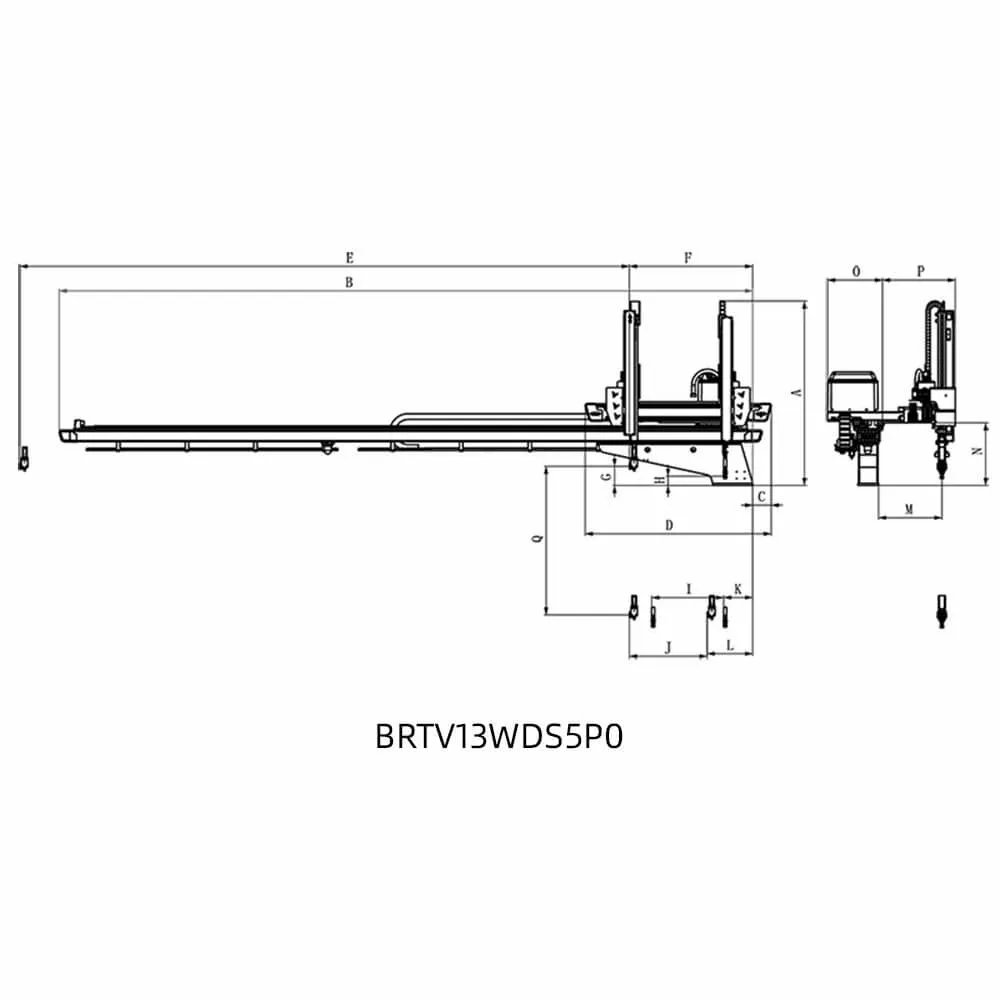 BRTV13WDS5P0/F0系列适用于320T-700T各型卧式注塑机,用于取出产品及浇口。其安装方式与传统横梁式机械手不同,产品放置在注塑机末端。该系列机械手为双臂结构,垂直臂为伸缩式工作台,垂直行程1300mm。采用五轴交流伺服驱动。安装后,可节省顶出器安装空间30-40%,更充分地利用厂房空间,提高生产效率,生产效率提升20-30%,降低不良率,保障操作人员安全,减少人力投入,精准控制产量,减少浪费。五轴驱动器与控制器集成系统:信号线少,通讯距离远,扩展性好,抗干扰能力强,重复定位精度高,可同时控制多轴,设备维护简单,故障率低。