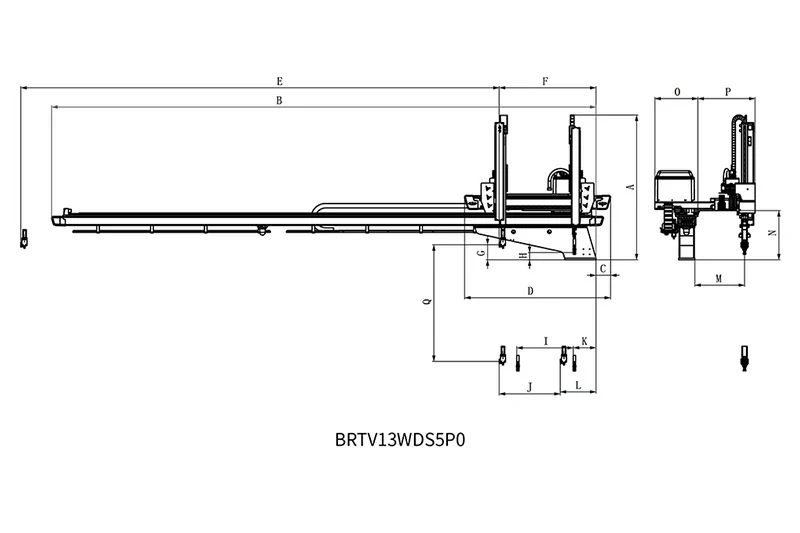 BRTV13WDS5P0/F0系列适用于320T-700T各型卧式注塑机,用于取出产品及浇口。其安装方式与传统横梁式机械手不同,产品放置在注塑机末端。该系列机械手为双臂结构,垂直臂为伸缩式工作台,垂直行程1300mm。采用五轴交流伺服驱动。安装后,可节省顶出器安装空间30-40%,更充分地利用厂房空间,提高生产效率,生产效率提升20-30%,降低不良率,保障操作人员安全,减少人力投入,精准控制产量,减少浪费。五轴驱动器与控制器集成系统:信号线少,通讯距离远,扩展性好,抗干扰能力强,重复定位精度高,可同时控制多轴,设备维护简单,故障率低。